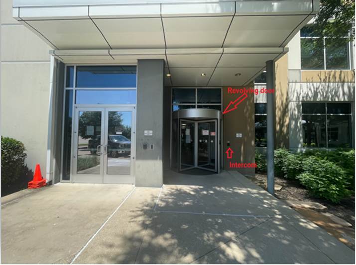 Revolving Door Entrance - Upon entering, you will see the security office where you will have your photo taken and security badge issued. You will need a photo ID for your security badge.