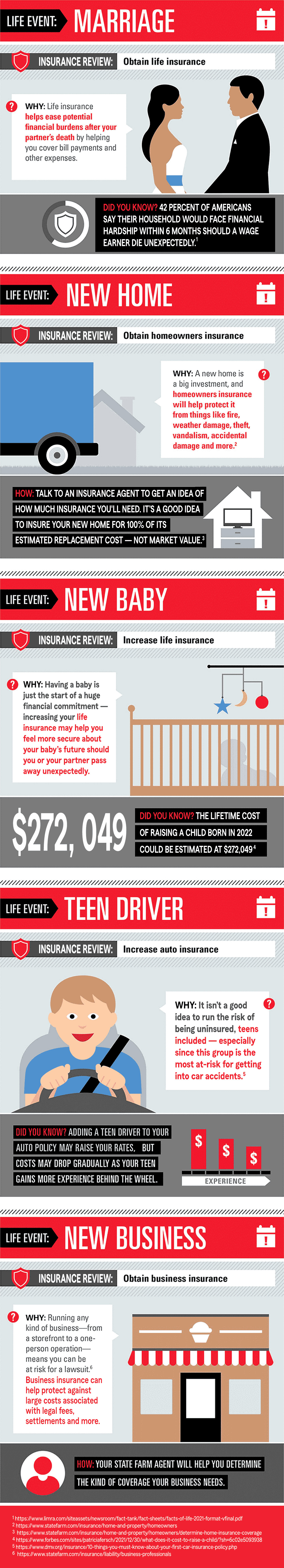 Planning a wedding or expecting a baby? You may want to help protect your growing family with adequate life insurance and disability income insurance. When you lose a loved one through death or divorce, an insurance policy review may also be important.